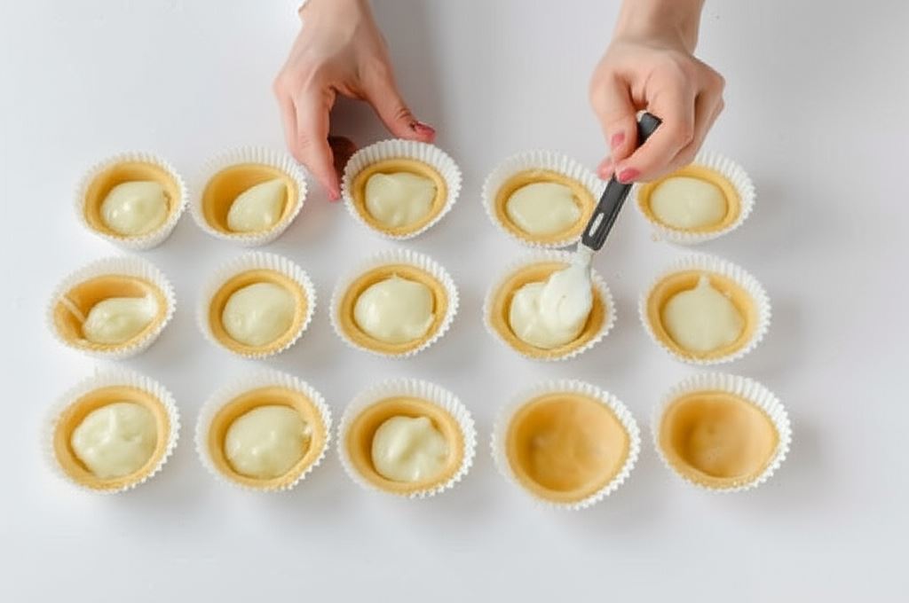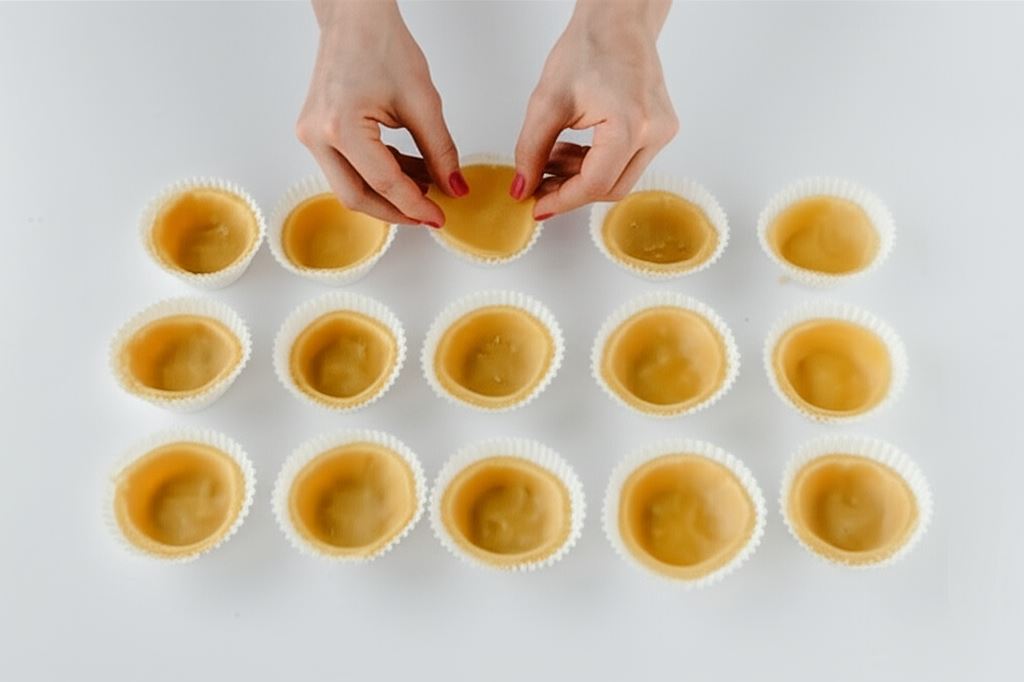 Wkładamy je do foremek na tarteletki lub papierowych kokilek (w tym przypadku najlepiej zastosować kilka kokilek na jedną babeczkę).