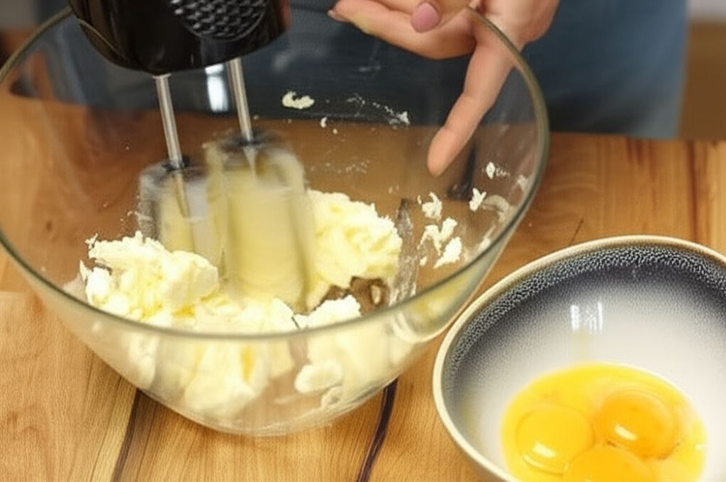 W misce wymieszaj miękkie masło i dodaj żółtka cały czas mieszając.