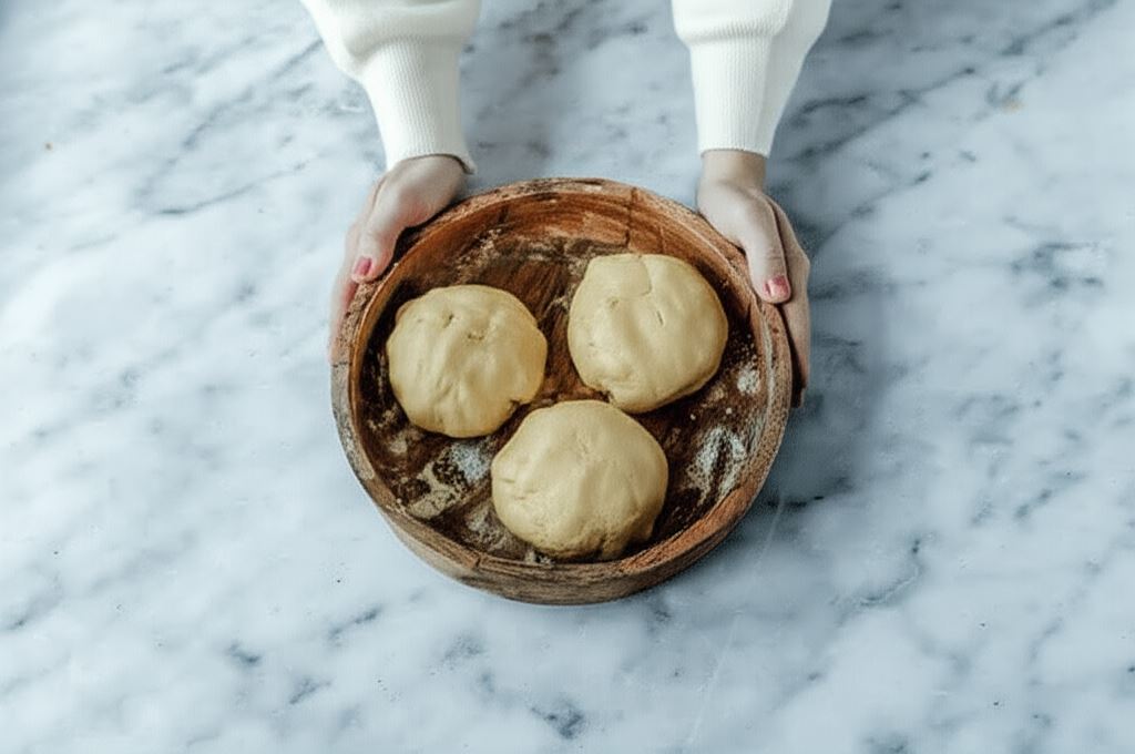 Przygotowane ciasto dzielimy na trzy części i kształtujemy z nich kulę.