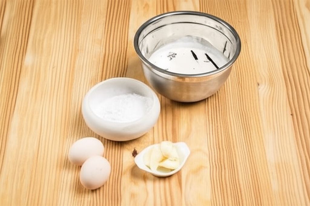 Sporządź ciasto. Oddziel białka od żółtek. Żółtka wytrzep z połową cukru, na jasną puszystą masę. Białka ubij na sztywno z pozostałym cukrem. Do ubitych żółtek wsyp wodę, mąkę pszenną, proszek do pieczenia oraz olej. Ostrożnie wymieszaj miękką łyżką.