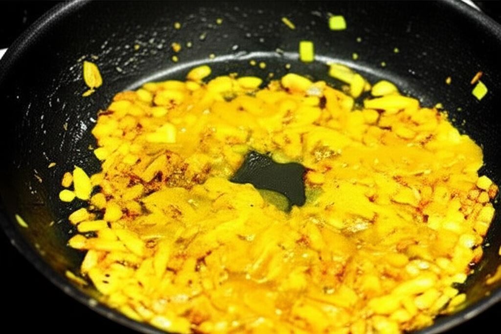 Umieść nasiona kuminu na rozgrzanym oleju i smaż, dopóki nie uzyskają rumianego koloru.