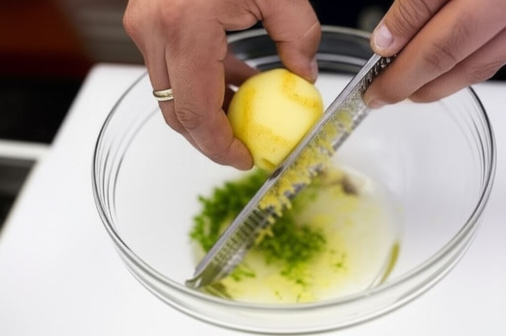 Sporządź marynatę: połącz przyprawę Delikat Knorr z sokiem i skórką cytrynową, łyżką oliwy oraz natką pietruszki.