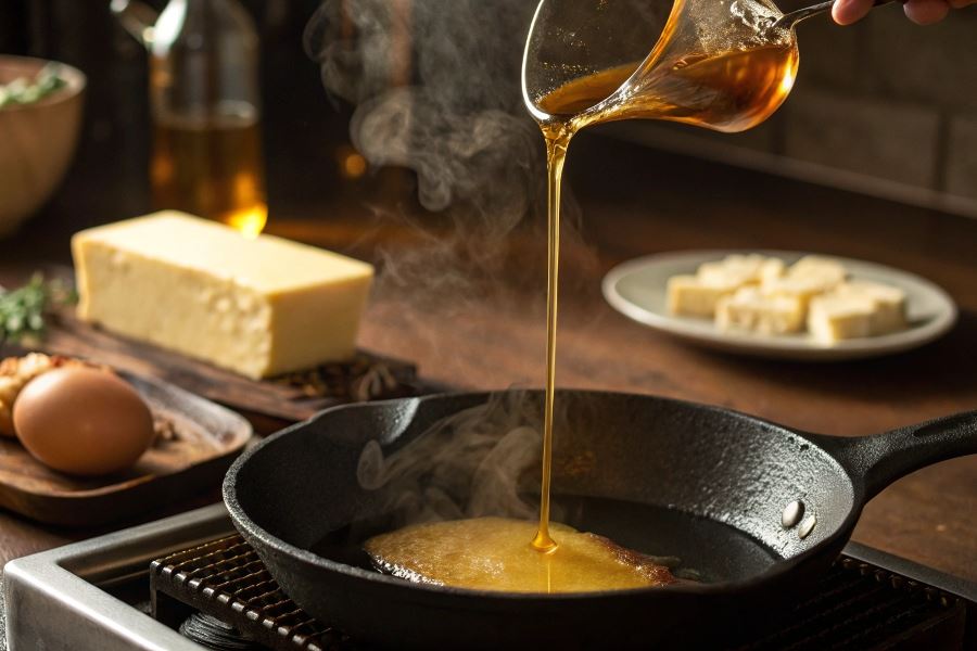 Masło klarowane wyróżnia się wyjątkowym punktem dymienia sięgającym nawet 250°C, co czyni je idealnym tłuszczem do smażenia w wysokich temperaturach. W przeciwieństwie do zwykłego masła, które zaczyna się palić już przy 120-130°C, klarowane nie zawiera białek mlecznych i wody, dzięki czemu nie przypalają się one podczas obróbki termicznej.