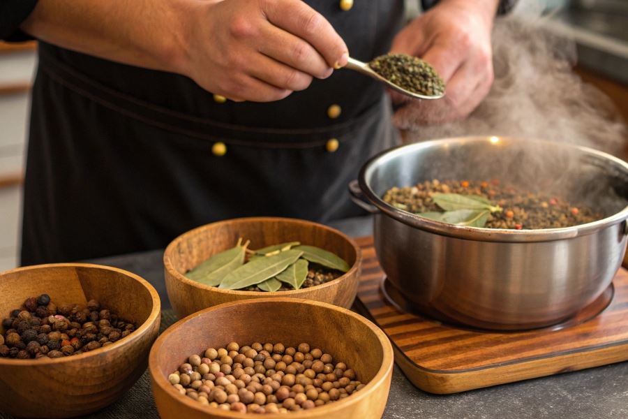 - Pieprz czarny świeżo mielony – najlepiej dodawać tuż przed końcem gotowania