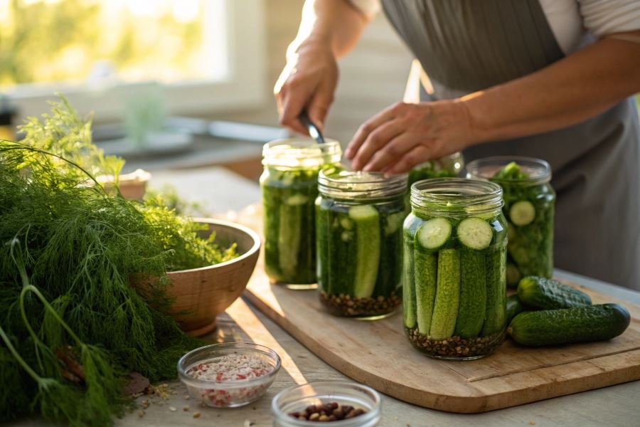 Tradycyjne ogórki kiszone nie wymagają pasteryzacji – naturalna fermentacja mlekowa konserwuje produkt i nadaje mu charakterystyczny, orzeźwiający smak.