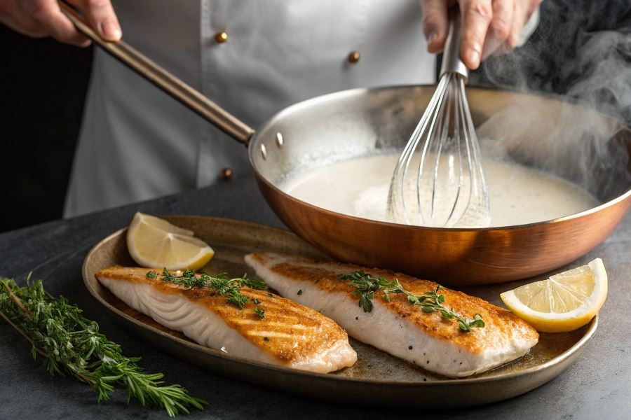 Minimalistyczne podejście do białego sosu rybnego zyskuje na popularności wśród szefów kuchni specjalizujących się w kuchni śródziemnomorskiej. Emulsja z wysokiej jakości oliwy z pierwszego tłoczenia i świeżego soku z cytryny tworzy jedwabisty sos, który podkreśla naturalny smak ryby.