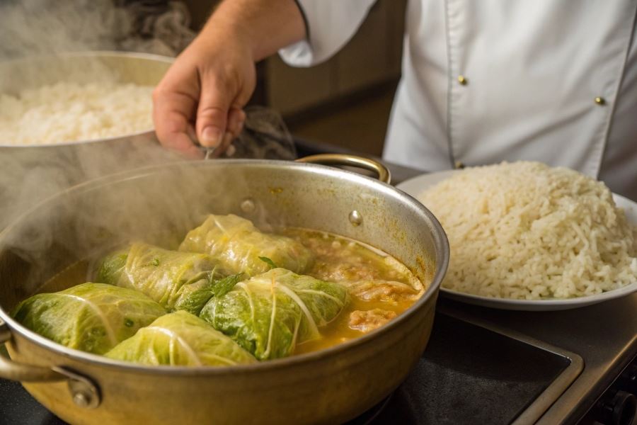 Sekret szefów kuchni: dodaj 2 łyżki masła do farszu i zastąp 1/3 ryżu kaszą jęczmienną – gołąbki zyskają kremową konsystencję i nie będą twarde nawet po odgrzaniu.