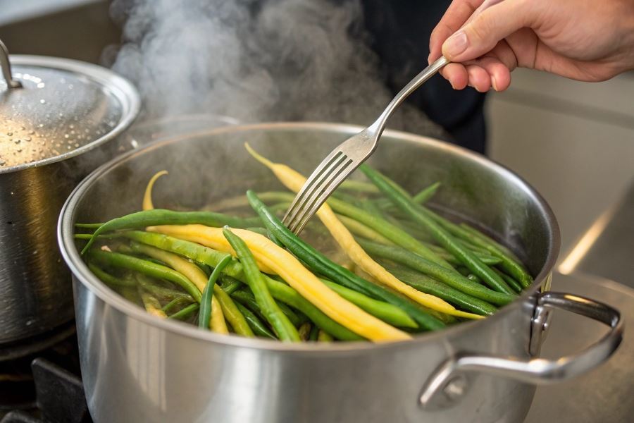 Gotowanie na parze to metoda pozwalająca zachować maksimum wartości odżywczych. Wystarczy umieścić fasolkę w specjalnym naczyniu do gotowania na parze lub sicie nad garnkiem z wrzącą wodą. Czas przygotowania jest nieco dłuższy niż przy tradycyjnym gotowaniu – około 8-10 minut dla zielonej i żółtej fasolki oraz 7-9 minut dla fioletowej.