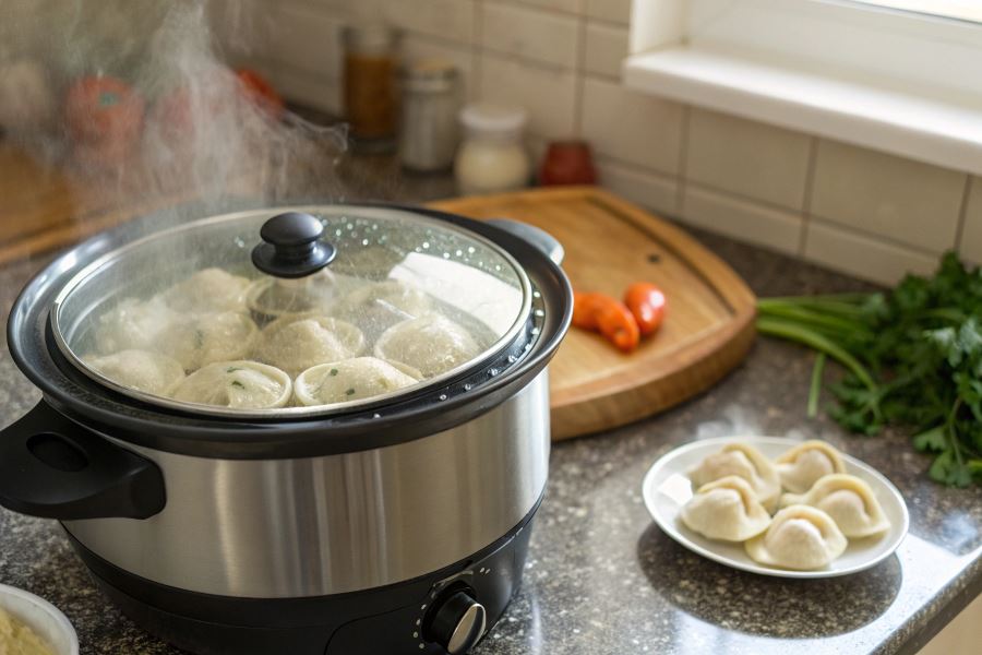 Multicooker pozwala również na gotowanie pierogów bez konieczności mieszania, co zmniejsza ryzyko ich uszkodzenia i zachowuje idealny kształt.