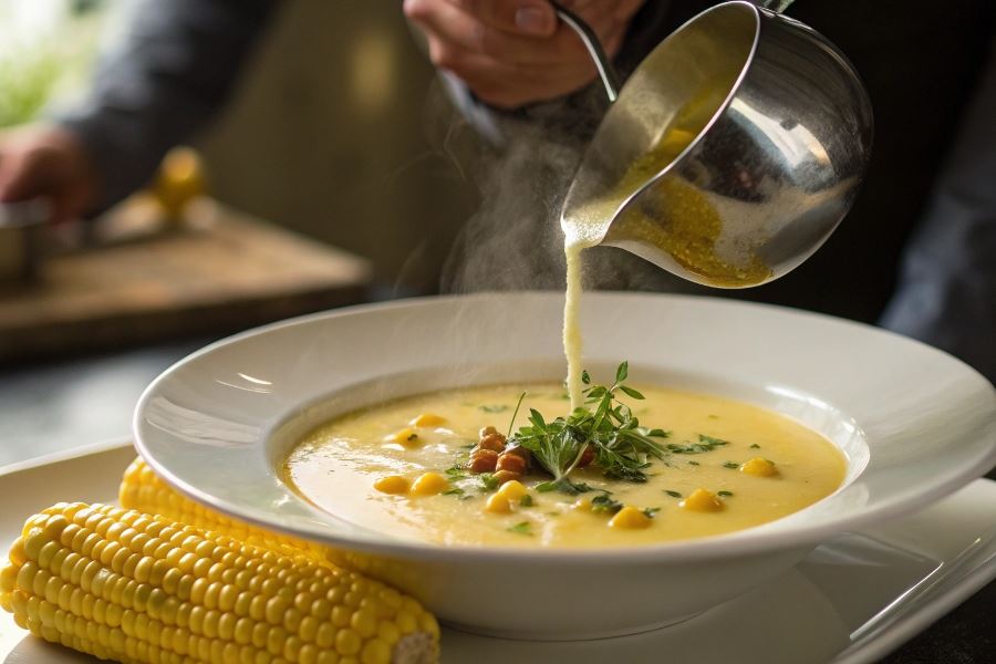 Zupa krem z kukurydzy zyskuje wyjątkowy charakter dzięki odpowiednim dodatkom. Profesjonalni szefowie kuchni polecają: