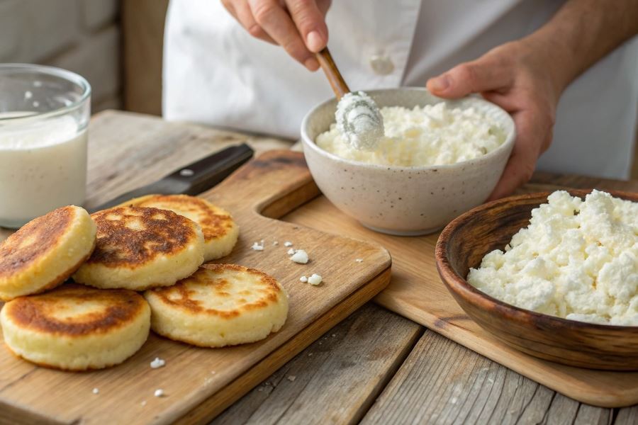 Wskazówka eksperta: Przed dodaniem mąki, wymieszaj serek wiejski z jajkiem i cukrem do uzyskania jednolitej masy. Dopiero wtedy stopniowo dodawaj mąkę, aby uniknąć grudek i nadmiernego zagęszczenia ciasta.