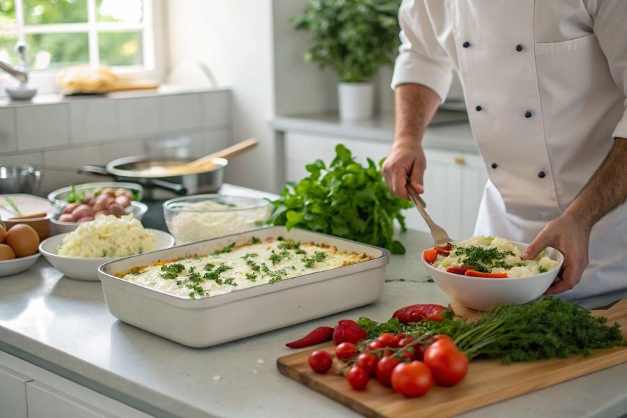 Ser wiejski to nie tylko składnik deserów – jego delikatna konsystencja i lekko kwaskowy smak doskonale sprawdzają się w wytrawnych daniach. Zapiekanki z serem wiejskim zyskują kremową teksturę bez nadmiaru tłuszczu. Wystarczy wymieszać ser z podsmażonymi warzywami (cukinią, bakłażanem, papryką), dodać świeże zioła i zapiec pod warstwą tartego sera żółtego. Dla intensywniejszego smaku warto dodać suszone pomidory lub oliwki.
