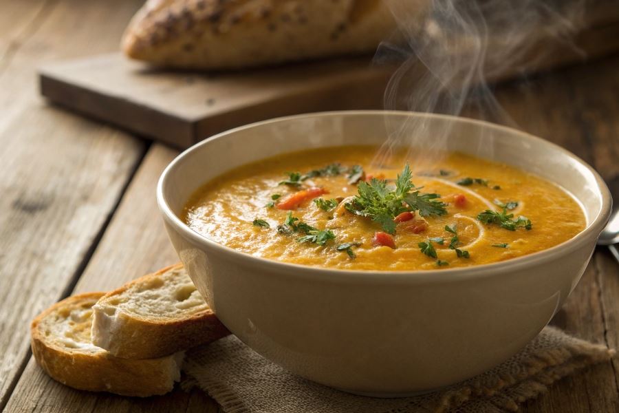 - Pieczenie warzyw przed zblendowaniem uwydatnia słodycz marchwi i karmelizuje skrobię ziemniaków, nadając zupie głębszy, bardziej złożony profil smakowy