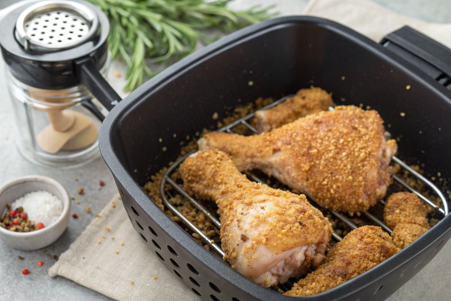Podstawą chrupiących udek z airfryer jest odpowiednio skomponowana panierka, która zachowa swoją strukturę podczas obróbki termicznej: