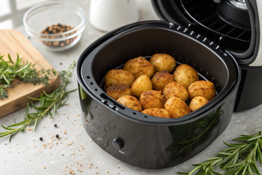 Młode ziemniaki przygotowane w airfryer zyskują wyjątkową teksturę – chrupiącą z zewnątrz i delikatną w środku. Wystarczy skropić je minimalną ilością oliwy, doprawić ulubionymi ziołami i w kilkanaście minut cieszyć się doskonałym dodatkiem do obiadu lub samodzielną przekąską.