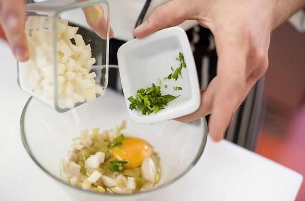 Po wystudzeniu wsyp jajka, pokrojoną w kostkę bułkę, posiekaną natkę pietruszki i śmietanę.