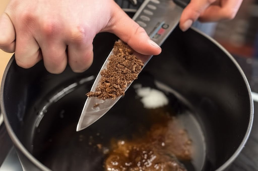 W rondlu albo woku podgrzej olej kokosowy, dodaj zmiażdżone nożem na desce goździki i cynamon, następnie smaż przez kilkanaście sekund.