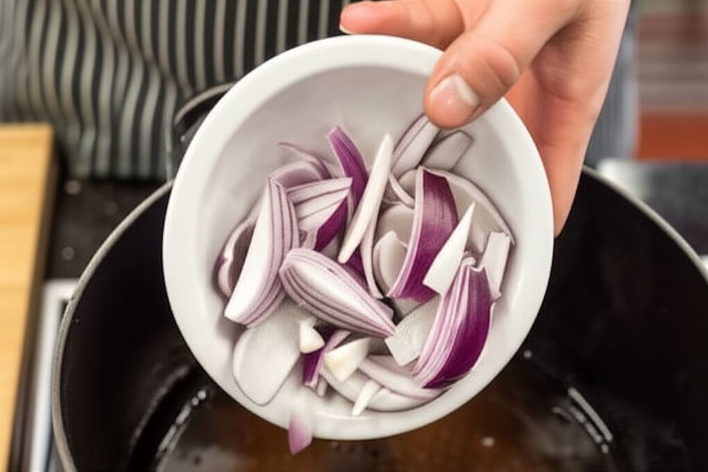 Wrzuć pokrojoną w łódeczki cebulę i przysmaż, aż uzyska delikatnie złotawy kolor.