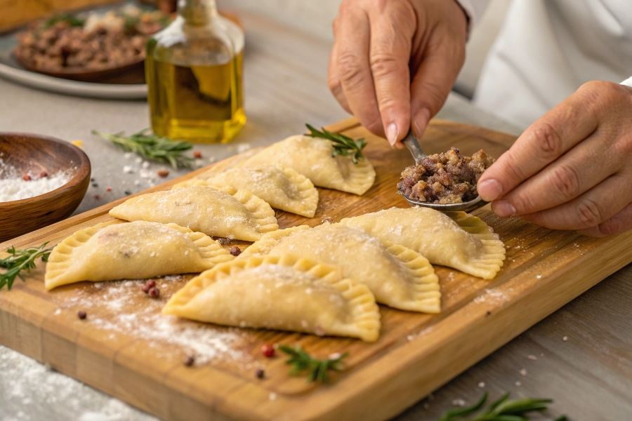 Prawidłowo przygotowane czebureki powinny być wypełnione nadzieniem w taki sposób, aby pozostawić około 1 cm wolnej przestrzeni przy brzegach, co zapobiegnie wyciekaniu farszu podczas smażenia.