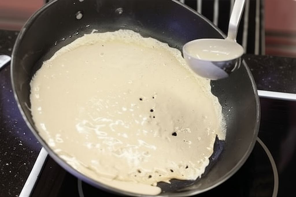 Z jaj, cukru, mąki, mleka, wody, oleju i kakao przygotuj płynną, jednorodną masę na ciasto. Potem na nagrzanej, delikatnie natłuszczonej patelni usmaż naleśniki.