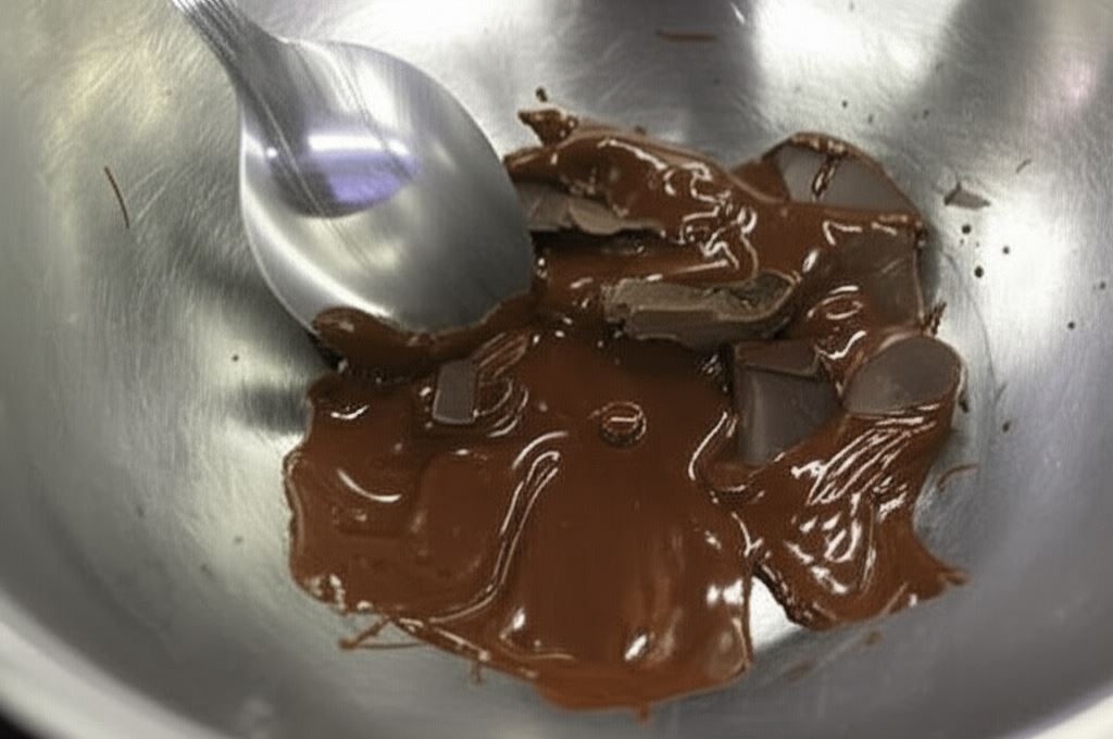 Jedną połowę czekolady zetrzyj na drobne wiórki – pozostałą część rozpuść w kąpieli wodnej.