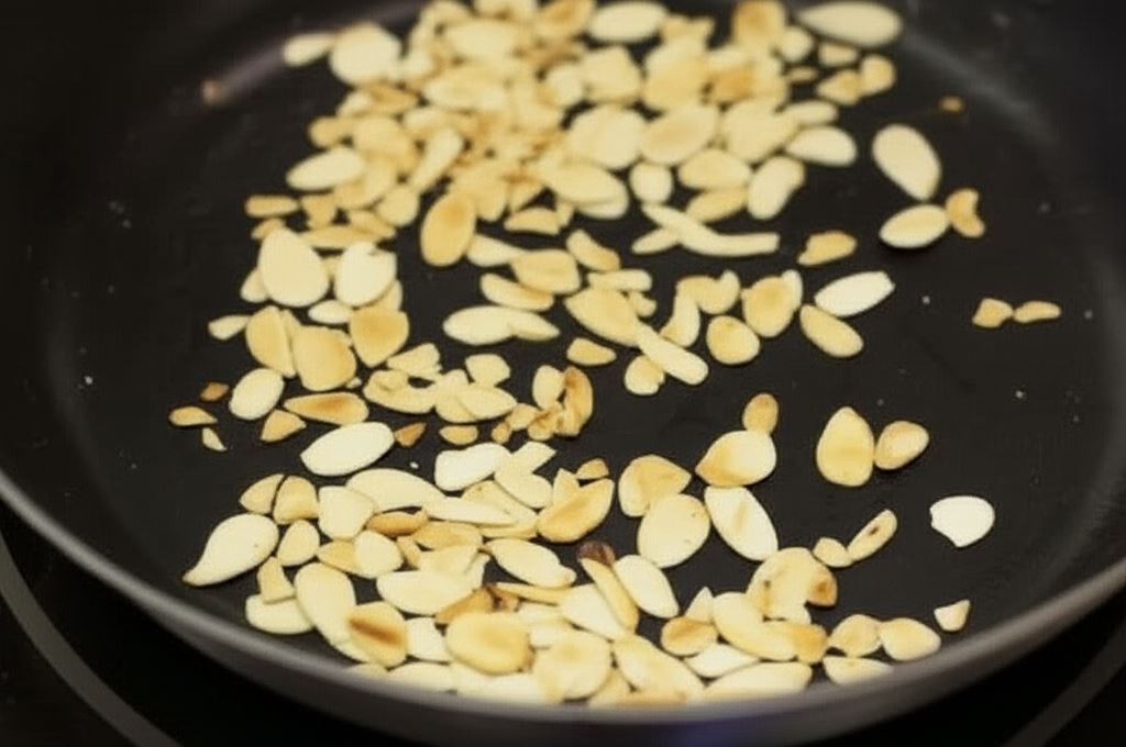 Na suchej, rozgrzanej patelni upraż najpierw orzechy, potem migdały.