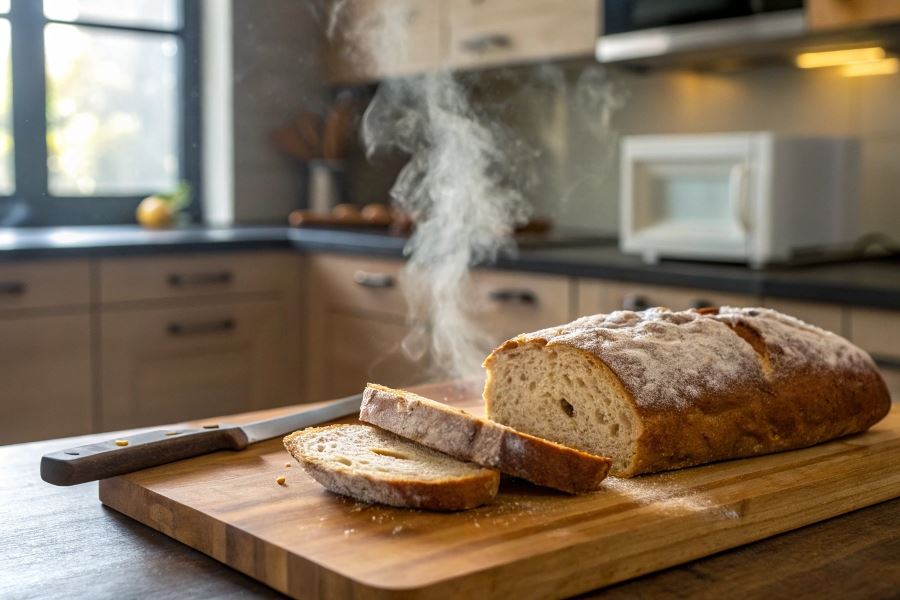 Piekarnik pozwala nie tylko rozmrozić, ale i odświeżyć pieczywo. Umieszczenie w piekarniku małego naczynia z wodą tworzy parę, która zapobiega wysuszeniu miękiszu. Alternatywnie można przykryć chleb folią aluminiową na pierwszą połowę czasu rozmrażania, a następnie odkryć dla przywrócenia chrupkości.