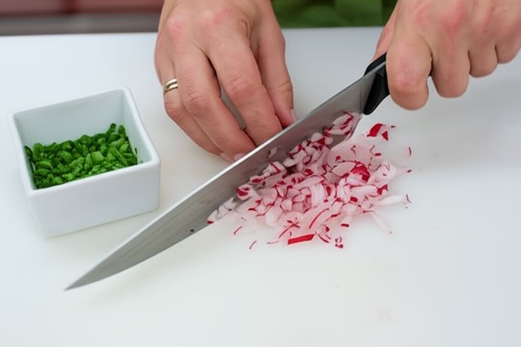 Posiekaj resztę rzodkiewek i szczypiorku.