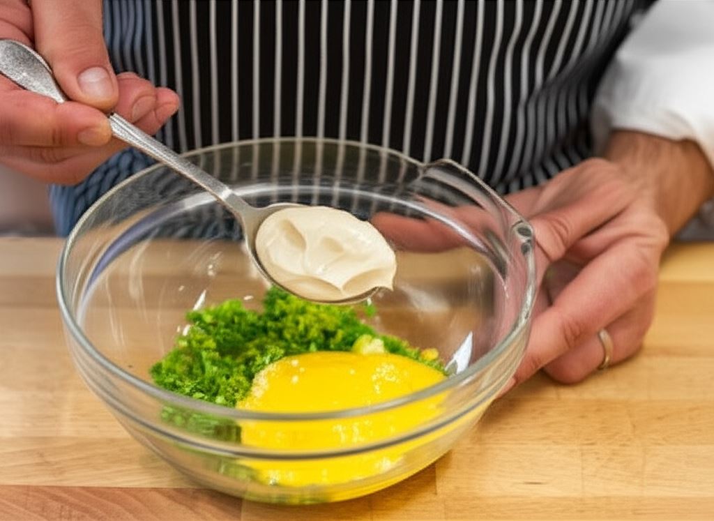 Zetrzyj skórkę z limonki i wyciśnij sok. Połącz z miąższem mango, majonezem Hellmann's, startym imbirem, drobno posiekaną papryczką chili, siekaną kolendrą i miętą. Przypraw do smaku olejem sezamowym i dokładnie wymieszaj całość.