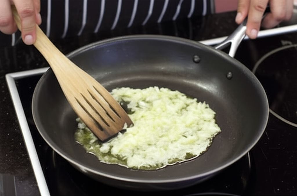 Jedną cebulę posiekaj w małą kostkę i przesmaż na margarynie do przezroczystości.