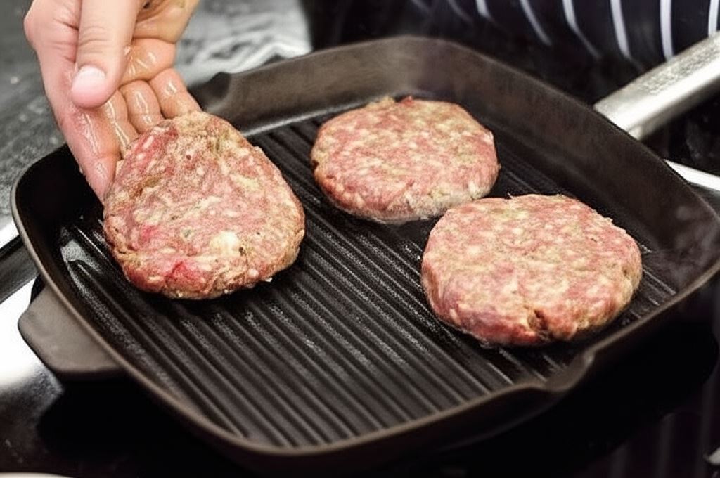 Uformuj cztery kotlety i smaż je na patelni z oliwą lub na grillu po obu stronach, aby były zarumienione i soczyste wewnątrz.
