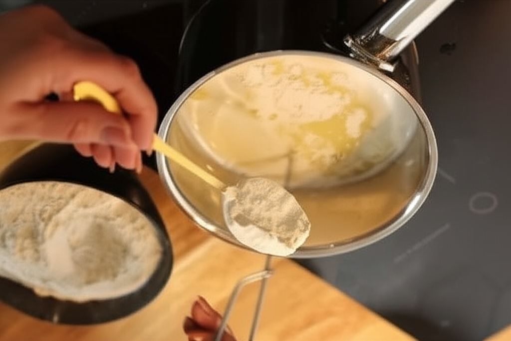 W garnku doprowadź do wrzenia wodę z masłem i odrobiną soli. Kiedy masło się roztopi wsyp mąkę i krótko gotuj. Odstaw do ostygnięcia.