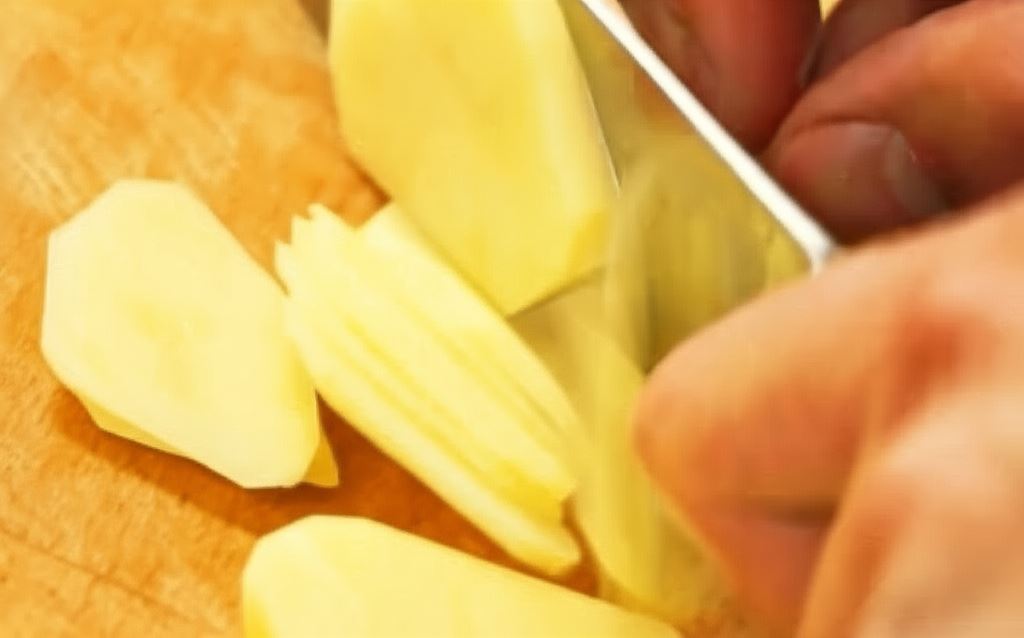 Ugotuj kartofle, obierz i pokrój w plasterki.
