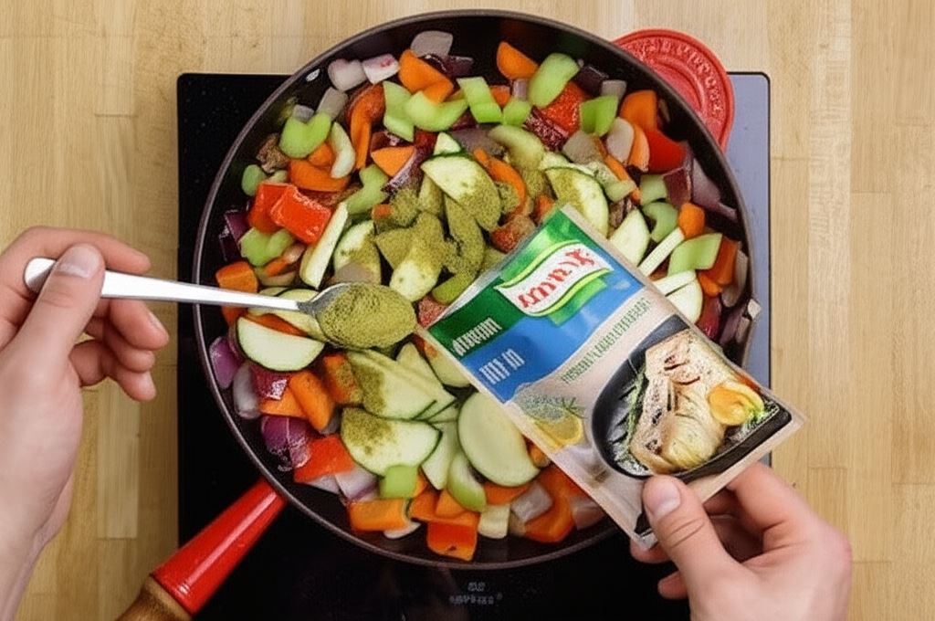 Warzywa obsmaż przez 2-3 minuty na rozgrzanej patelni z oliwą, przypraw do smaku przyprawą Knorr. Wszystko przenieś do naczynia żaroodpornego.