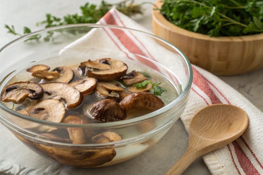 Woda po moczeniu grzybów to prawdziwy skarbiec smaku! Zawiera rozpuszczone związki aromatyczne, które doskonale wzbogacą smak zup, sosów czy risotto.