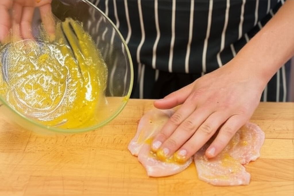 Posmaruj rozbite płaty mięsa przygotowaną pastą.