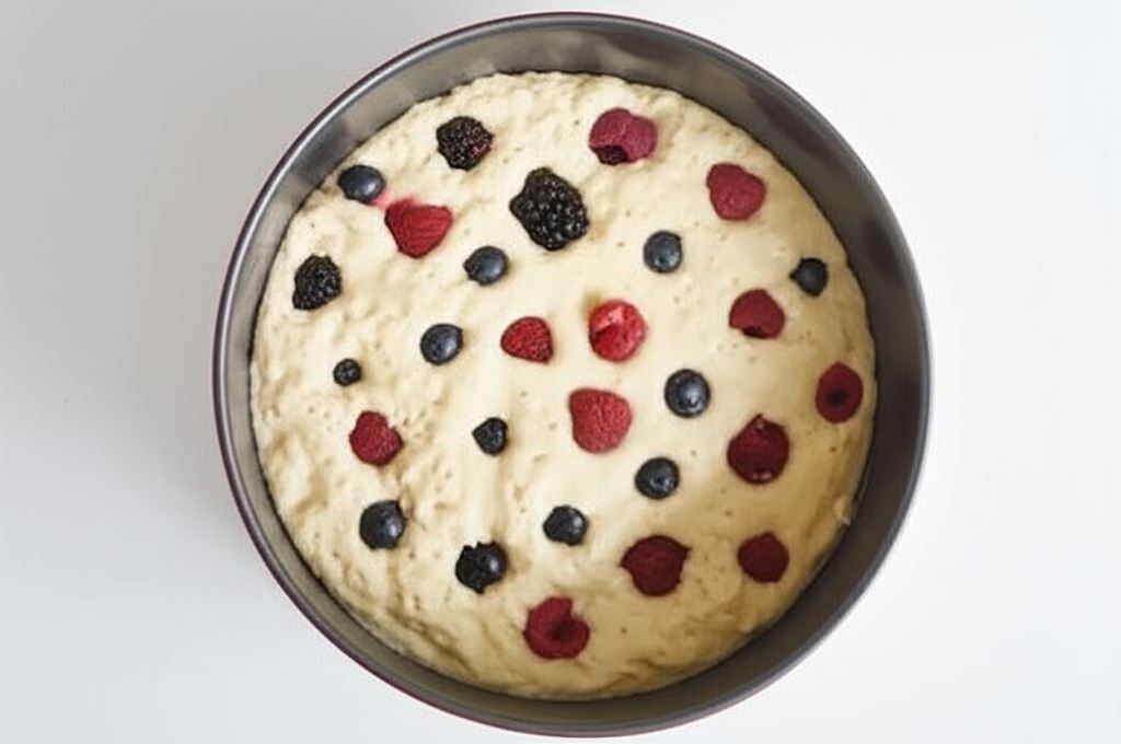 Przygotowanie zaczynamy od pokruszenia drożdży i dodania cukru. Następnie łączymy letnie mleko z roztopionym, przestudzonym masłem i dodajemy do drożdży. Roztrzepane jajka z solą i pozostałym cukrem trafiają do miski razem z mąką. Po zamknięciu miski i energicznym potrząśnięciu, odstawiamy ją w ciepłe miejsce. Gdy ciasto wyrośnie, przekładamy je do tortownicy, posypujemy owocami i pieczemy w 170°C przez około 40 minut.