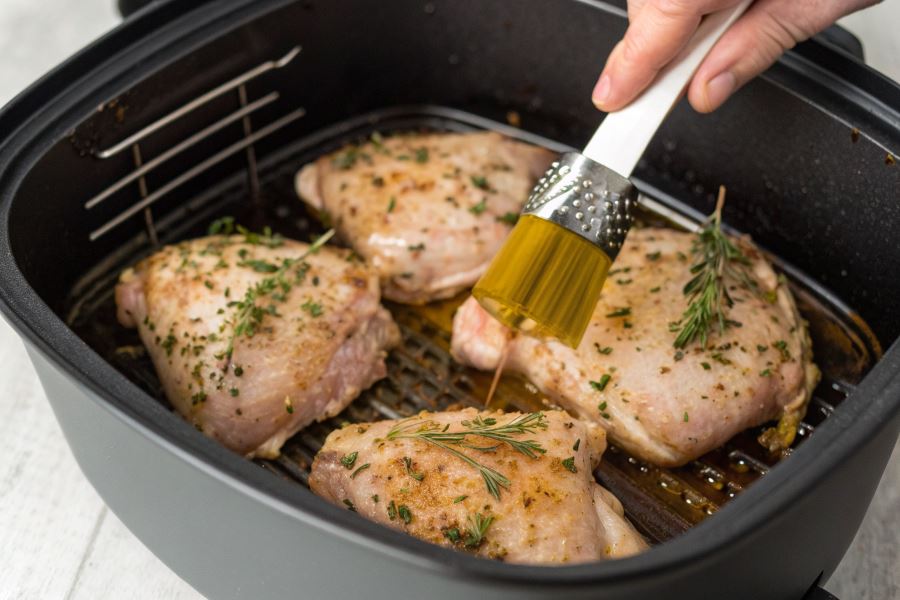 Brak odpowiedniego natłuszczenia znacząco wpływa na końcowy rezultat. Mimo że airfryer reklamowany jest jako urządzenie do beztłuszczowego smażenia, całkowite wyeliminowanie tłuszczu prowadzi do wysuszenia mięsa. Wystarczy spryskać mięso oliwą z atomizera lub zamarynować je przed smażeniem.