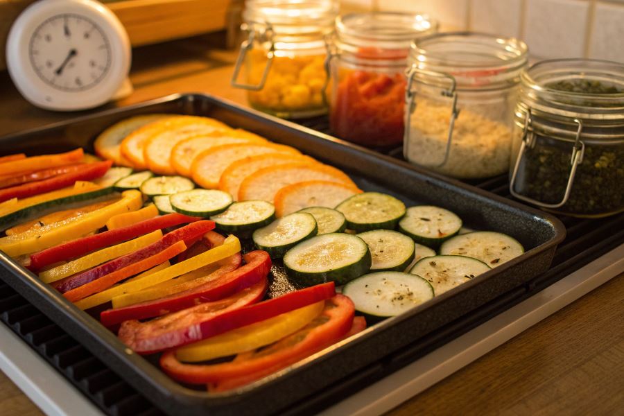 Suszenie w airfryerze pozwala zachować intensywny smak warzyw, a jednocześnie znacząco redukuje ich objętość, co ułatwia przechowywanie.
