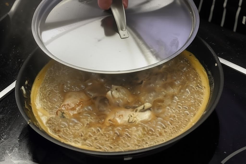 Wszystko zagotuj, następnie gotuj przez około 20-30 minut pod częściowo przykrytą pokrywką, aż mięso stanie się miękkie.