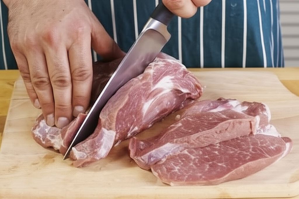 Mięso przepłucz i potnij na kotlety o grubości 2 cm.