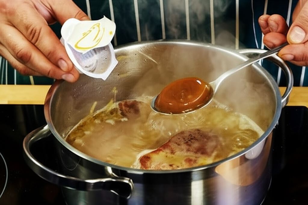 Umieść mięso, Sos do pieczeni z cebulką Knorr i gotuj na niskim ogniu aż karkówka stanie się miękka. Serwuj z ziemniakami lub kaszą.