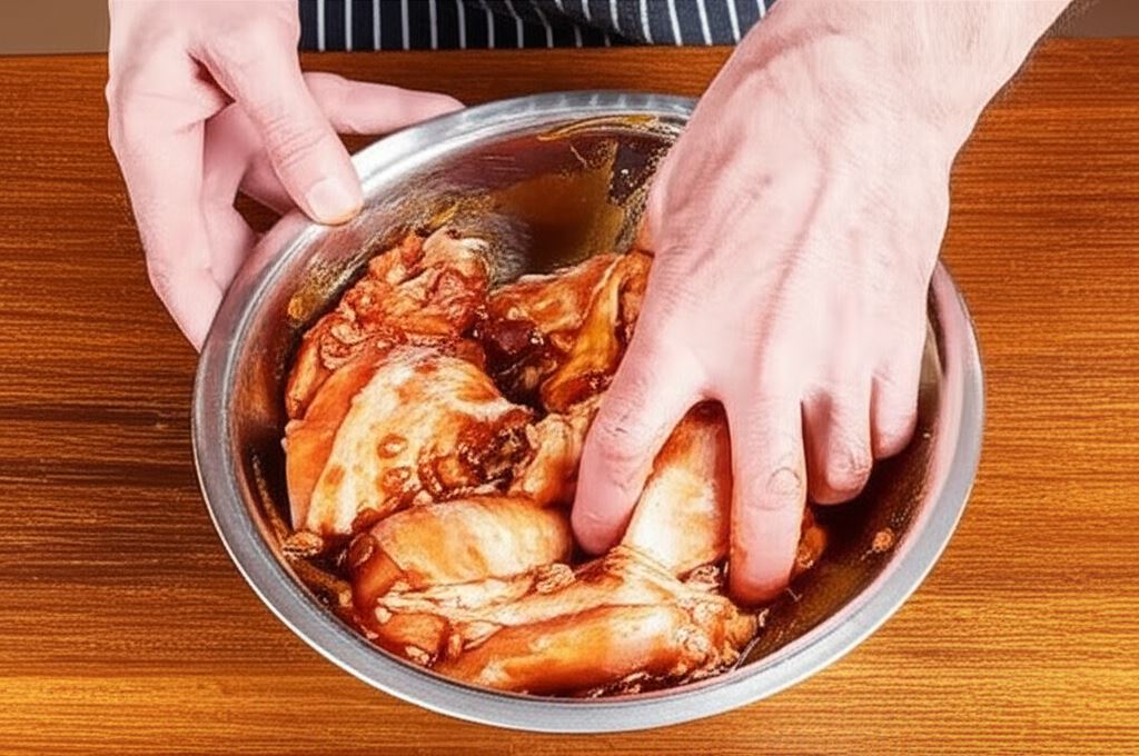 Umieść kurczaka w przygotowanej marynacie, zamieszaj, pozostaw na godzinę.