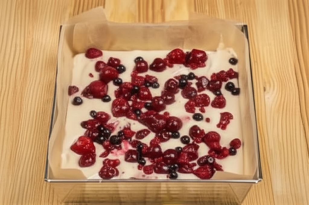 Zamrożonych owoców nie trzeba rozmrażać przed dodaniem do ciasta! Wrzucone prosto z zamrażarki, podczas pieczenia oddadzą wilgoć, dzięki czemu wypiek będzie jeszcze bardziej soczysty i aromatyczny.