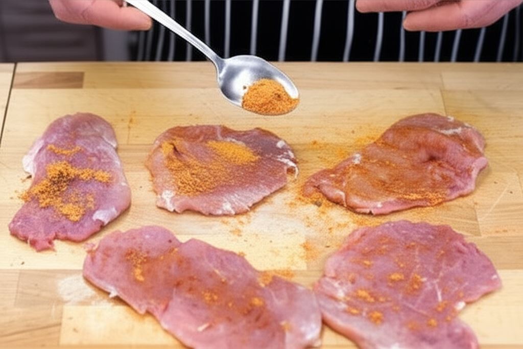 Mięso oczyść, potnij w plastry. Kawałki mięsa ubij lekko tłuczkiem, posyp przyprawą do mięs i złóż. Uformowane w ten sposób eskalopki posyp mąką i przyrumień na patelni.