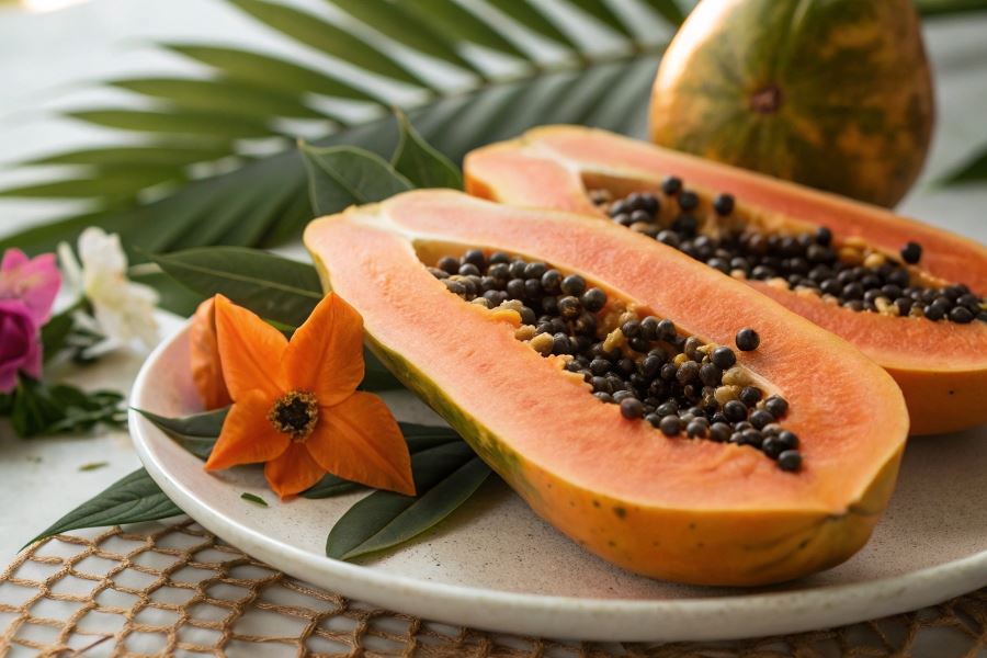 Dojrzała papaja uwalnia enzymy proteolityczne, które nie tylko nadają jej charakterystyczny smak, ale również sprawiają, że jest naturalnym środkiem wspomagającym trawienie.