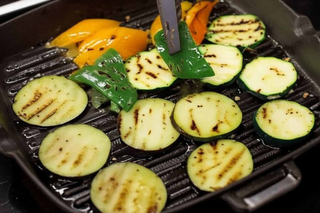 Plastry warzyw smaż na przykład na patelni do grillowania przez kilka minut z obu stron, aby zmiękły i uzyskały rumianą barwę.