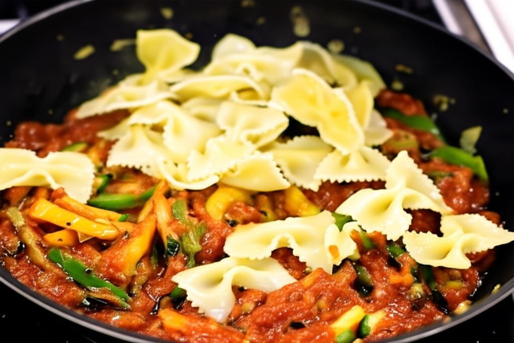 Makaron ugotowany al dente w połączeniu z delikatnie zarumienionymi warzywami tworzy harmonijną kompozycję, która zadowoli nawet najbardziej wymagające podniebienia. Całość dopełnia aromatyczny sos, który idealnie łączy wszystkie składniki, tworząc pyszne danie gotowe w zaledwie 30 minut!