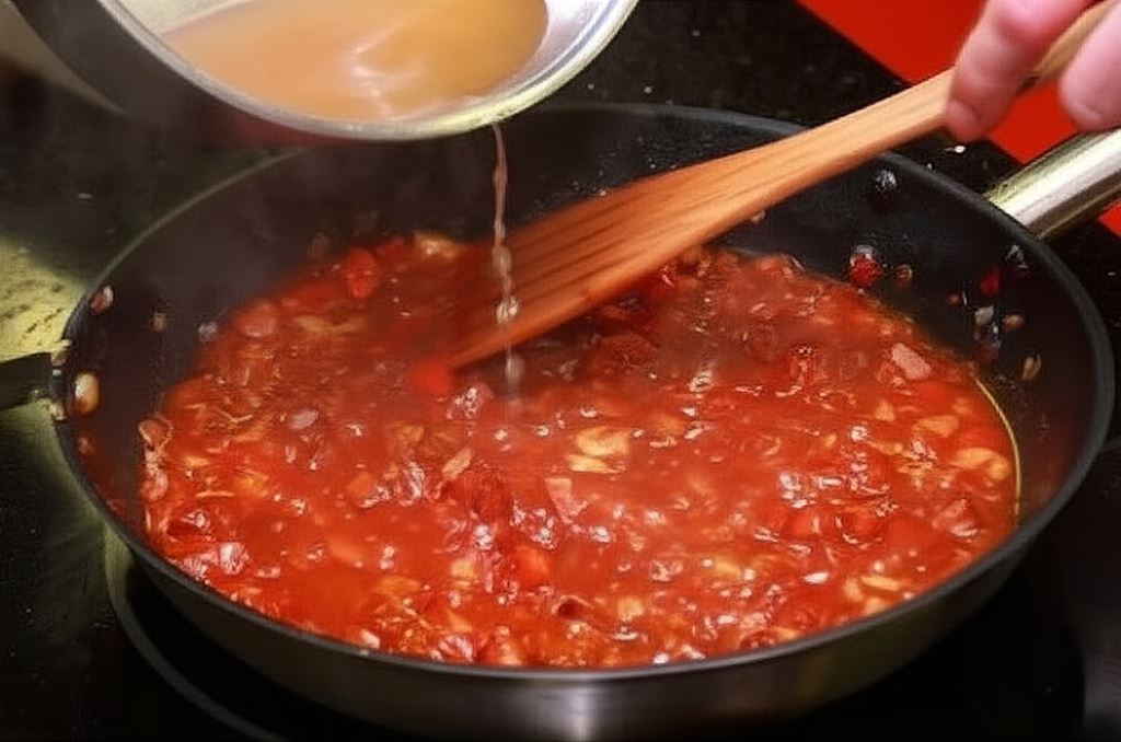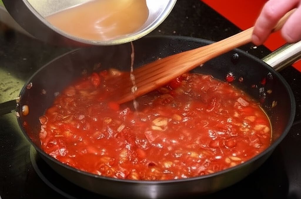 Wsyp ugotowaną fasolę, ketchup, pokruszony kminek, posiekany czosnek oraz kostki Rosołu z kury Knorr. Wszystko gotuj jeszcze przez około 5 minut, nieustannie mieszając.
