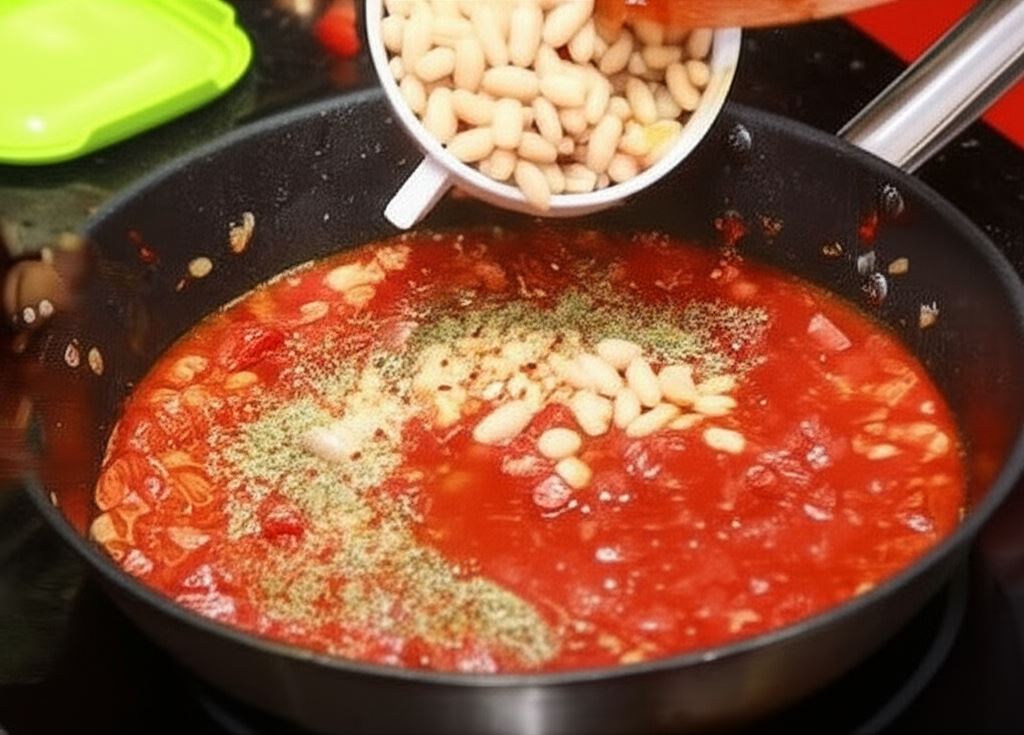 Nasza wersja fasolki po bretońsku bazuje na białej fasoli i boczku, ale możliwości modyfikacji są niemal nieograniczone. Spróbuj zastąpić boczek białą kiełbasą lub karkówką, aby uzyskać inny profil smakowy. Możesz również eksperymentować z dodatkiem różnych ziół i przypraw, dostosowując danie do własnych preferencji.